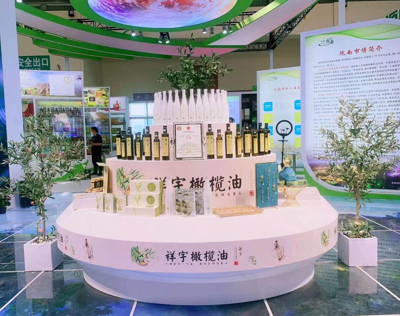 在本屆蘭洽會上,祥宇公司不僅展示了特級初榨橄欖油、橄欖茶、橄欖菜、橄欖果、橄欖護膚品、橄欖保健品、