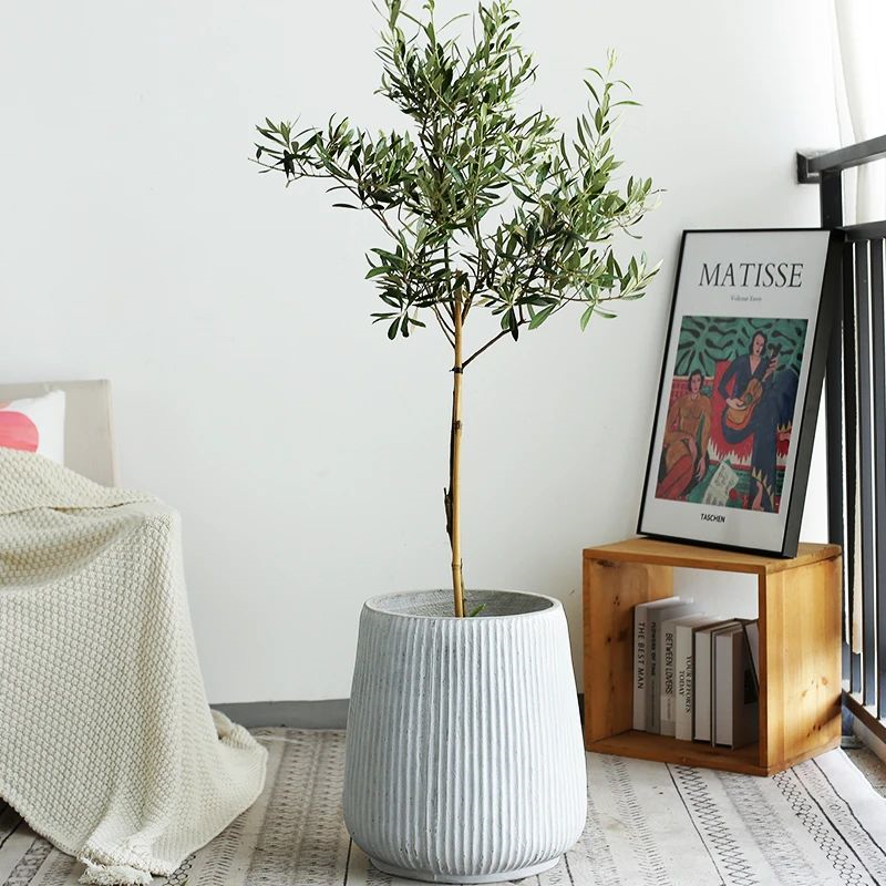 單調(diào)背景墻,放一盆油橄欖,