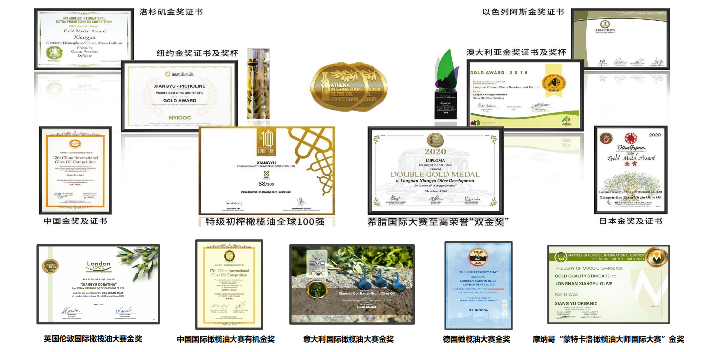等國(guó)際橄欖油專業(yè)大賽的金獎(jiǎng)證書(shū),成為最好的品質(zhì)證明。